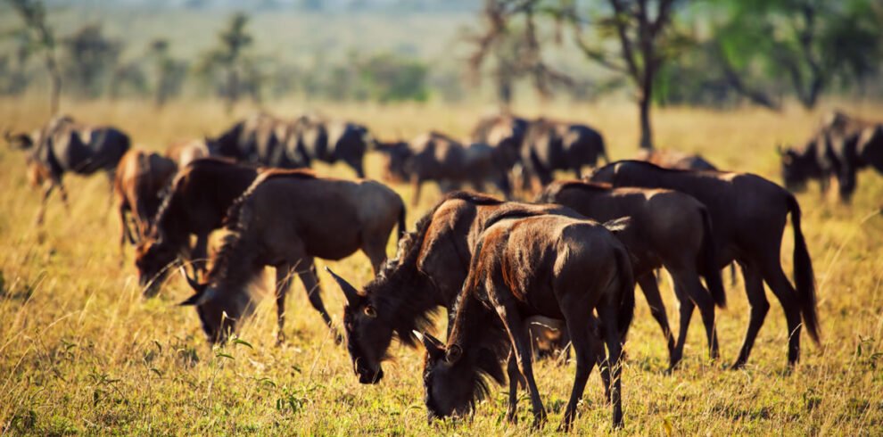 The vegetation ranges from mopane woodland to riverine forest, open grasslands and acacia thicket. Trees include the beautiful sausage tree, vegetable ivory palms, red mahogany and leadwood.